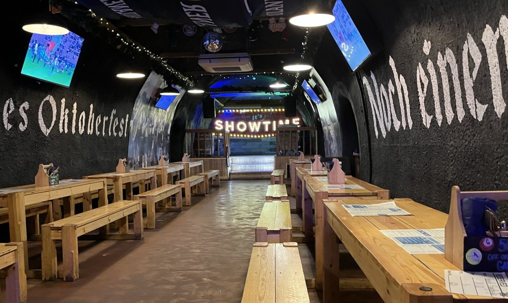 Many bars had decorated with balloons to attract NFL fans who were in town. The Norseman couldn’t decide between the Vikings and the Steelers, so they decorated with both.