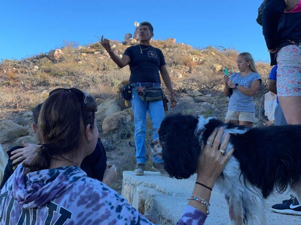 The first half of the hike is a fairly gentle climb on a rocky and sandy path with brush on both sides. Moving up the hill, the views of the Sea of Cortez and the marina slowly become more and more impressive. You also start to see more of Cabo San Lucas as well. The dogs pretty much lead this hike with Enrique also in the front. This was the easy part of the hike. After maybe around 15-20 minutes, Enrique stopped on a concrete slab and talked some more about the history of the area and again I got distracted by the dogs, because now the dogs were running back and forth between people getting pet by as many people as they could. I was happy to oblige.