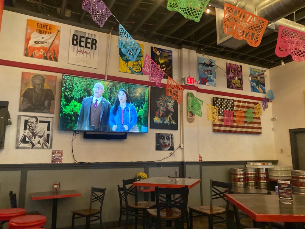 I walked into Back Unturned Brewing company in the early evening having not had a proper meal all day. The place was a little dark and industrial. The color scheme is one of a lot of black, deep reds, stainless steel and grey, There was a lot of original art on the walls and the lighting was dim. Oh, this place is edgy, trendy and I most definitely am not. I’m middle-aged, milquetoast, boring, you know, the kind of person that uses the word “milquetoast.” But I needed food and I wanted a beer, so I was gonna stay, even if I wasn’t cool enough to be there.