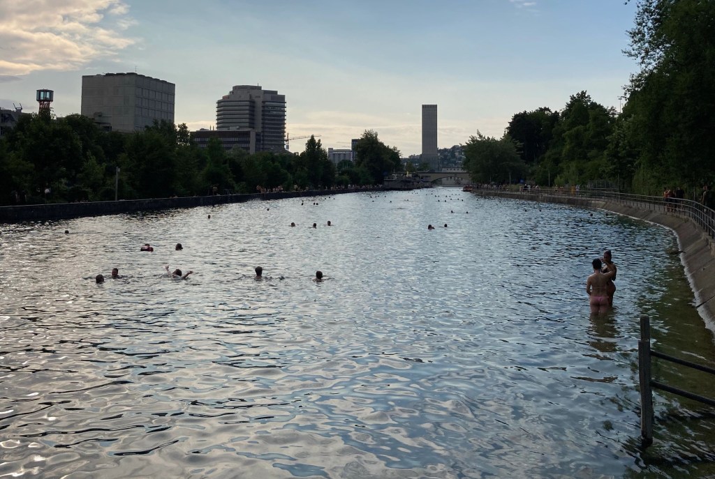 The Limmat River is a pretty large and fairly deep river, but yet there were tons of people floating in the river, not an inner tube in sight.