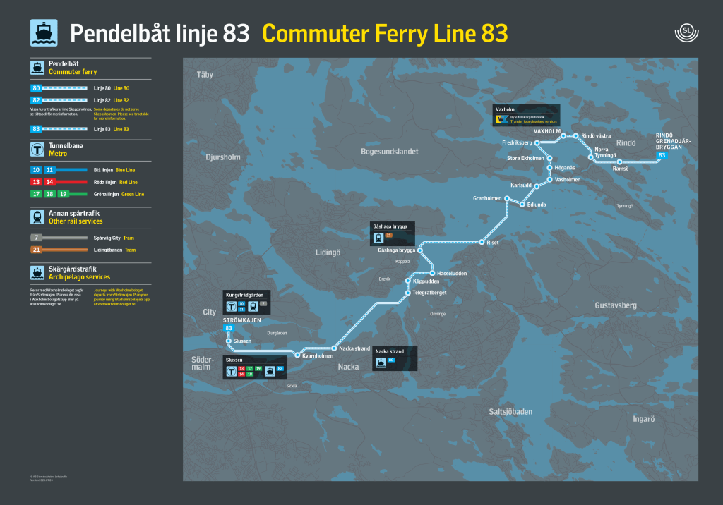 There are 4 ferry lines that are covered with the SL card – lines 80, 82, 83, and 89. The maps for where those lines go are located on the SL website.