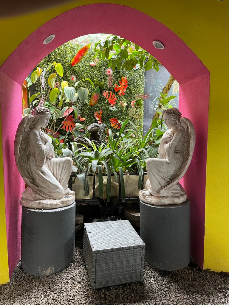 Los Jardines has a lot of antiques and little gardens scattered around the restaurant. It makes you want to walk around and get a look at all of the little touches that they have set up throughout the restaurant. We even sat at a table where all of the seats were swings. It was just a nice, fun place to have a meal.