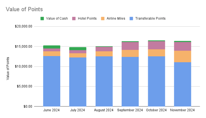 All of these miles, when using the Points Guy’s valuations, add up to around $15,600. That should give me plenty of room to do all of the travel planning that I need to do for 2025. That’s the fun stuff, I can’t wait!