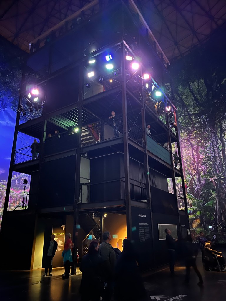 The exhibit we visited was Amazonia, which immerses the visitor in a 1:1 scale painting of the Amazon Rainforest. This exhibit has been hosted by other panoramic museums, but has been at Dresden’s Panometer since 2024 and should continue through the end of 2025.