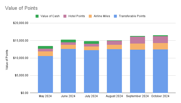 Using the Points Guy’s valuations, all of this totals to an all-time high for us of $15,800 in points, miles and cash back. We have some pretty big travel plans for 2025, so we’re going to need a big stash of points available. Hopefully I see some Black Friday deals so I can lock in some plane tickets!