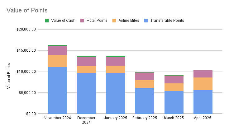 There wasn’t much going on for us as far as travel this month, and that’s fine. Over the last year, we had taken four trips to Europe. That’s utterly insane and we would never have thought that was possible prior to getting into points and miles. We’re now at the point where we almost have to talk ourselves out of taking trips, because with points, it’s always really tempting when you see a great deal.