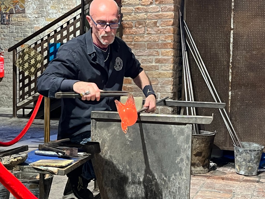 This glass demonstration is a perfect compliment to a day in Murano. Walking around the town, gazing at all of the glass masterpieces, you wonder how they make all of this amazing art. Getting an opportunity to watch a true artisan make these pieces in real time is an great experience.