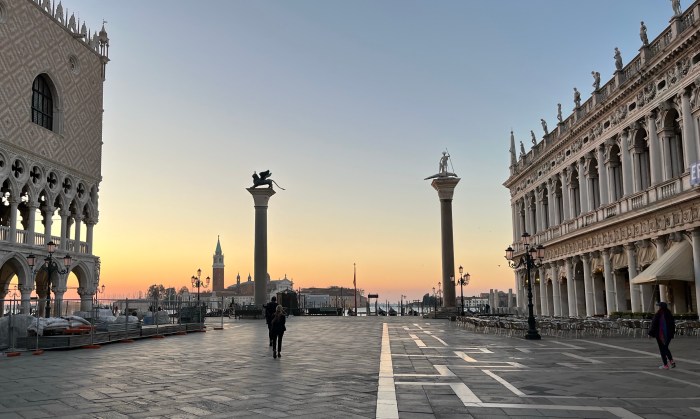 Two Columns, one with St Theodore and one with the Lion of Venice mark the boundary of Piazza San Marco.