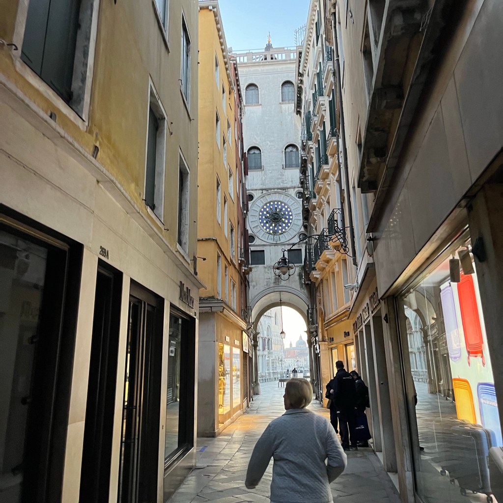 Basilica di San Marco barely visible as I approach the Piazza San Marco from under the clocktower.