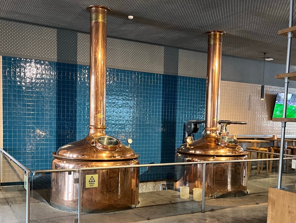Copper brewing equipment at Cervejaria Nortada